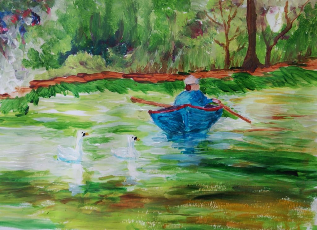 Here’s a mosaic from Viv and Sue proudly showing off her scarf, knitted on Tuesday mornings